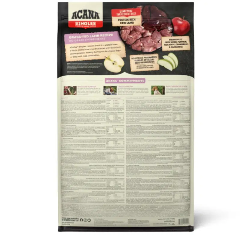 ACANA Grass-Fed Lamb, WholePrey oranlarında %50 taze veya çiğ kuzu eti içerir. Kaliteli protein kaynağı olan kuzu eti, tarifte tek hayvansal protein olarak kullanılır ve beslenme hassasiyetine sahip köpekler için ideal bir seçenektir.
