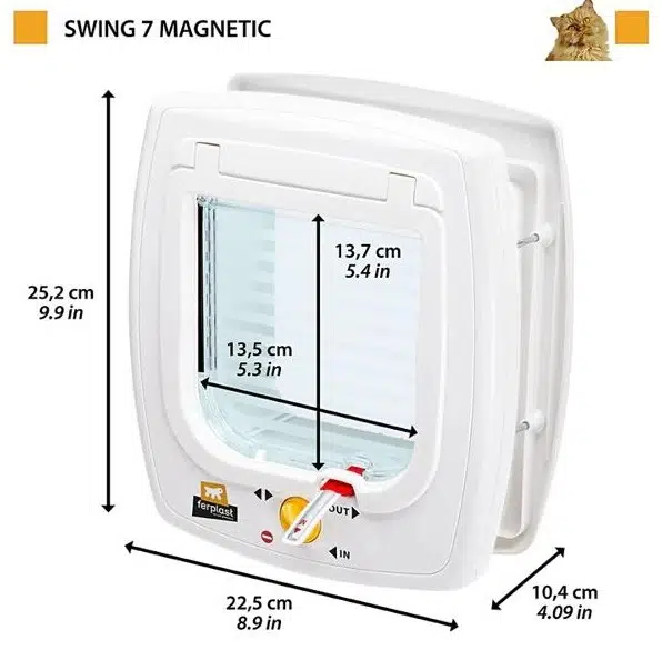Kedilerin evden dışarı rahatlıkla girip çıkmalarını sağlayan non-toksik yapılı plastik kedi kapısı.Cama ve kapıya takılabilir.Kedi tasmasına takılan manyetik cihaz sayesinde sadece kendi kedinizin kullanımına özeldir.